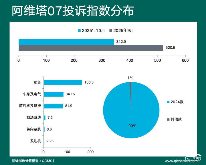 近日,汽车门网发布2025年10月车型投诉指数榜单。随着汽车市场竞争的加剧,不少车企开始通过加快新车更新频率和推出各种优惠补贴,提升产品的竞争力,但这也引发了一系列问题。例如新车的短期换代和增配降价让老车主愤怒不已,阿维塔07、理想L6、理想L7均因该问题上榜。除此之外,产品通病仍是榜单中的投诉主流,英朗、长安UNI-K、雅阁、迈锐宝XL就因为这样那样的质量顽疾成为投诉榜单的常客。